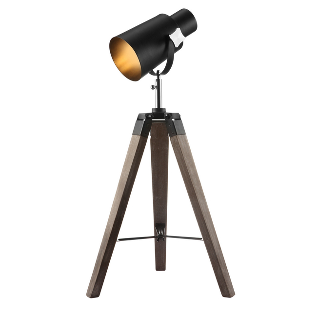 Tripod floor lamp with washed wood legs,matt black shade,adjustable height.Contemporary tripod floor lamp with natural oak wood base and metal shade adjustable height.