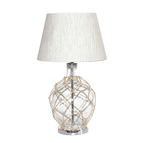 Clear glass table lamp with rope net decoration,with linen shade.Creative glass table lamp with rope net decor country style