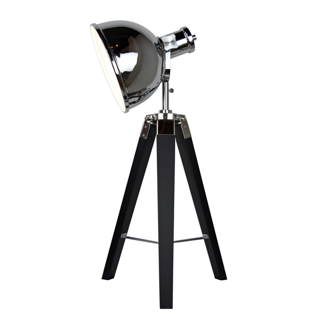 Tripod floor lamp with washed wood legs,chrome shade,adjustable height.Modern tripod floor lamp with natural wood base and chrome metal shade adjustable height.